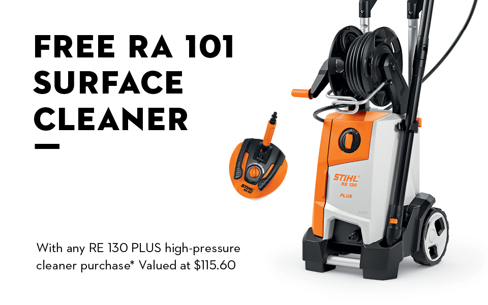 Finish the job like a true professional, with the RE 130 PLUS High-Pressure Cleaner + RA 101 Surface Cleaner.